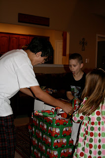 The kids opening their pjs, which the immediately took off to put them on, I guess hoping that would bring morning faster...as it was only 6 pm LOL!